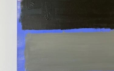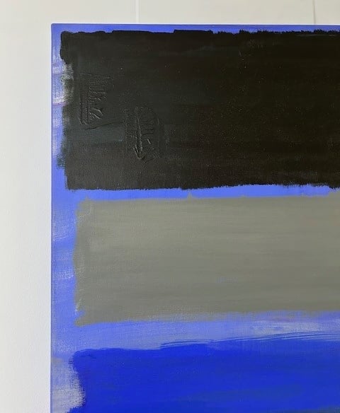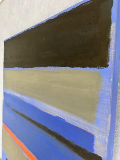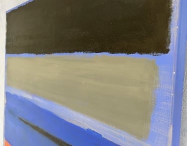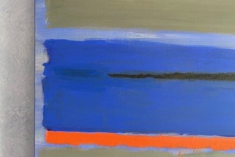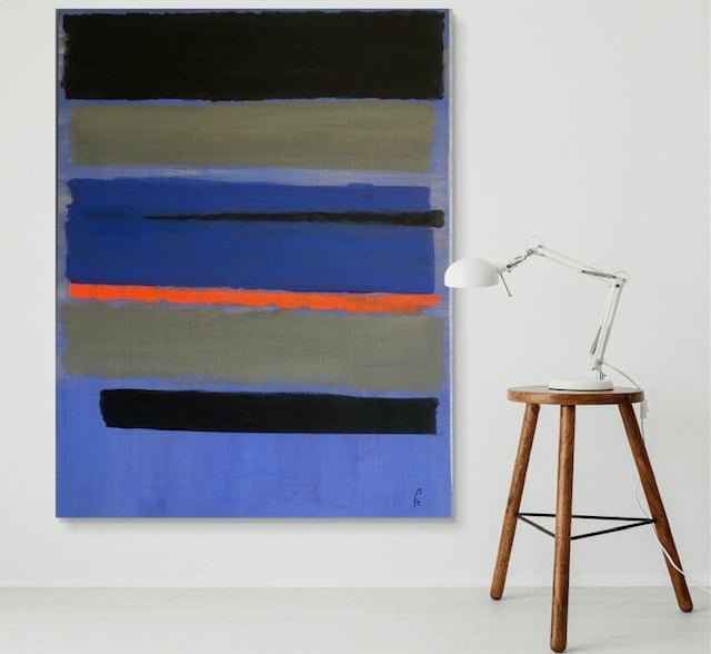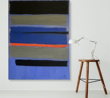 Un cuadro abstracto es una forma maravillosa de expresar arte. Vuelve a ser el pintor estadounidense Marc Rothko la fuente de inspiración. La composición de varios rectángulos con bordes desdibujados por veladuras, provocan sensaciones y emociones muy diferentes. El fondo azul cobalto determina la fuerza del cuadro, mientras que la franja naranja es el toque esencial del cuadro.
